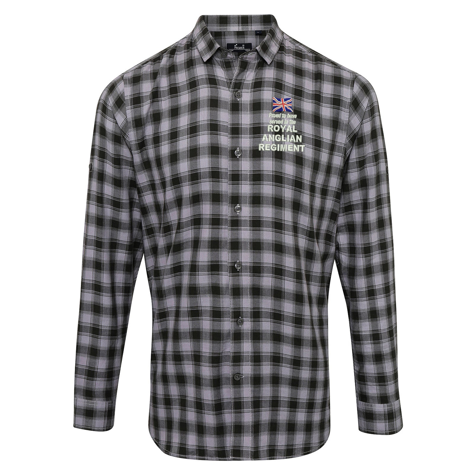 Proud to Have Served in The Royal Anglian Regiment Embroidered Long Sleeve Mulligan Check Shirt