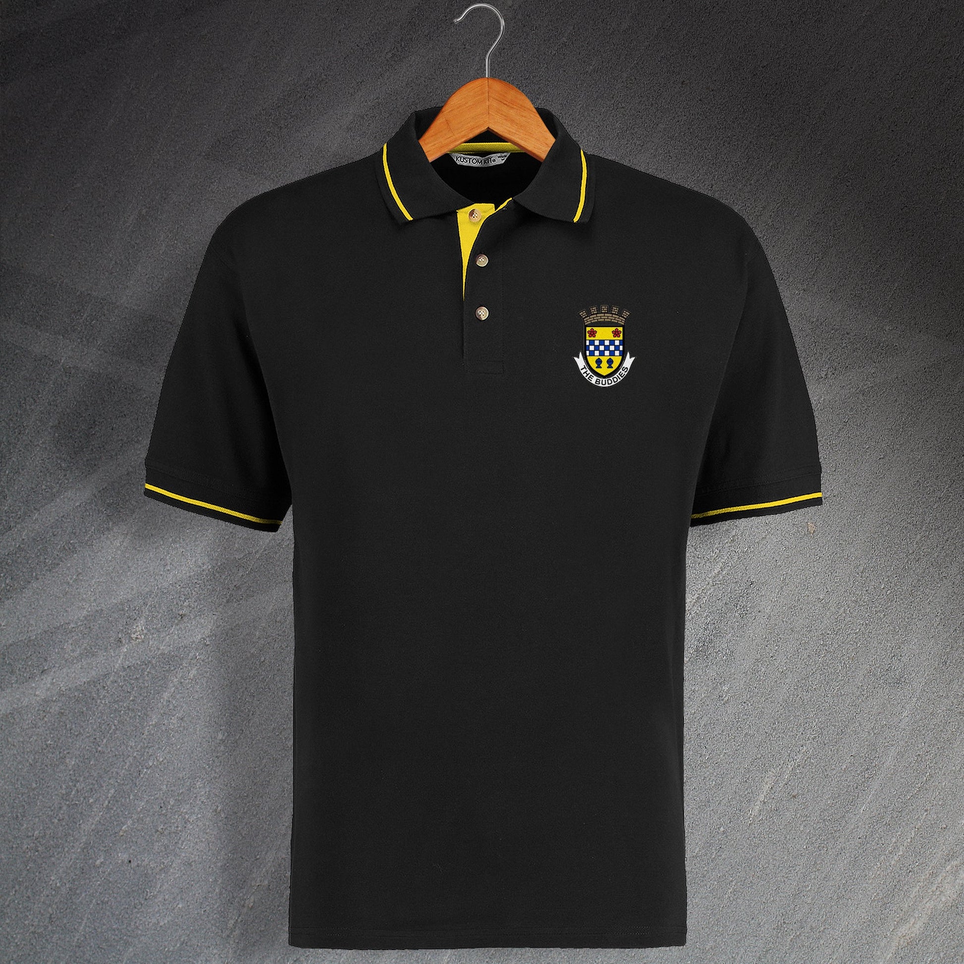 The use of contrast tipping and contrast inner placket along with horn effect buttons sets this 100% cotton Retro Buddies Embroidered Shield Contrast Polo Shirt apart from the rest. The polo shirt is available in four colours and six sizes.