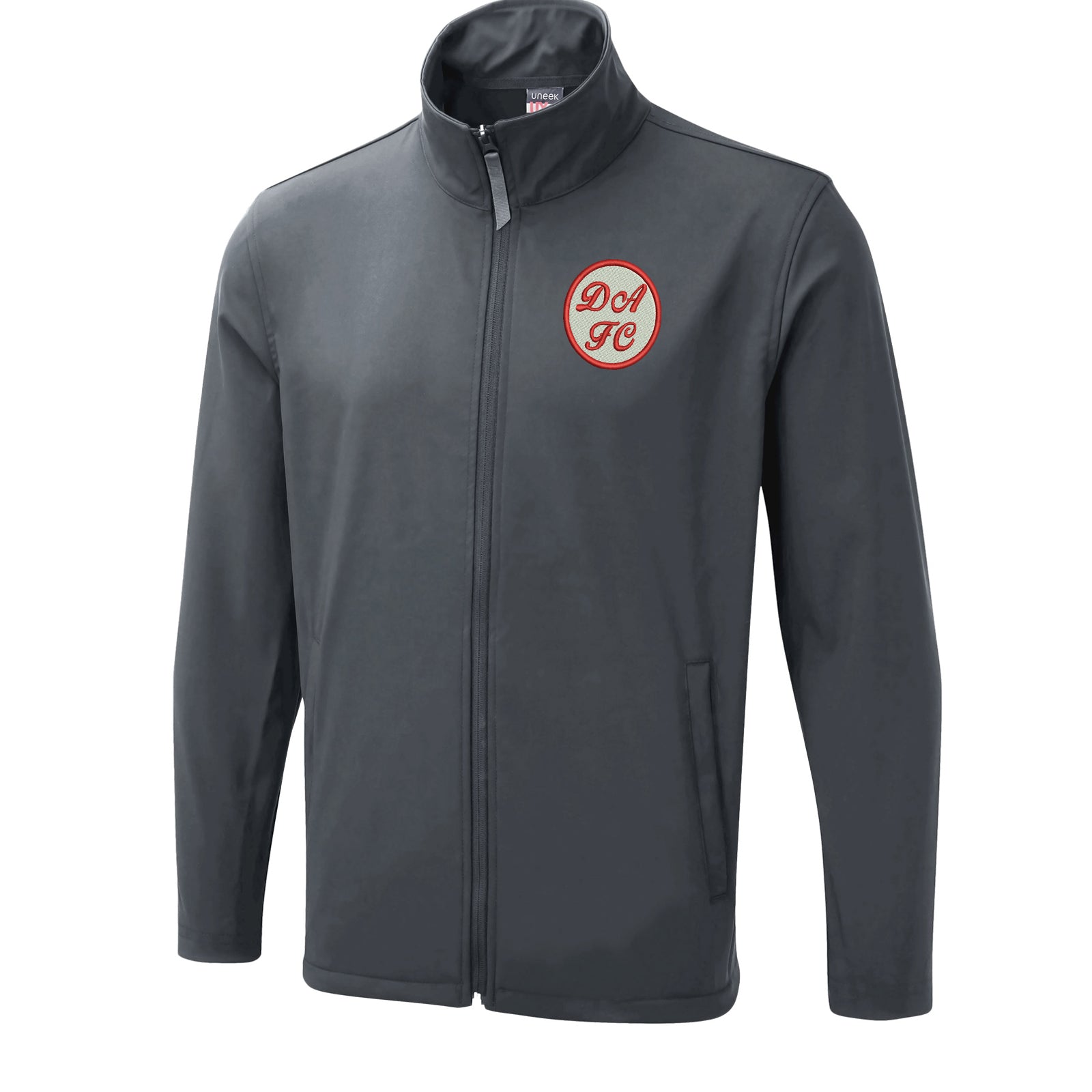 Stay warm and dry while showing off your pride with our embroidered lightweight soft shell jacket. Made with a 3 layer bonded fabric, it is waterproof up to 10,000mm and features a TPU membrane for breathability. The microfleece inner layer adds extra coziness, while the full waterproof zip and covered pockets keep your belongings safe. With a contemporary fit and hanger loop, it's the perfect addition to any wardrobe.