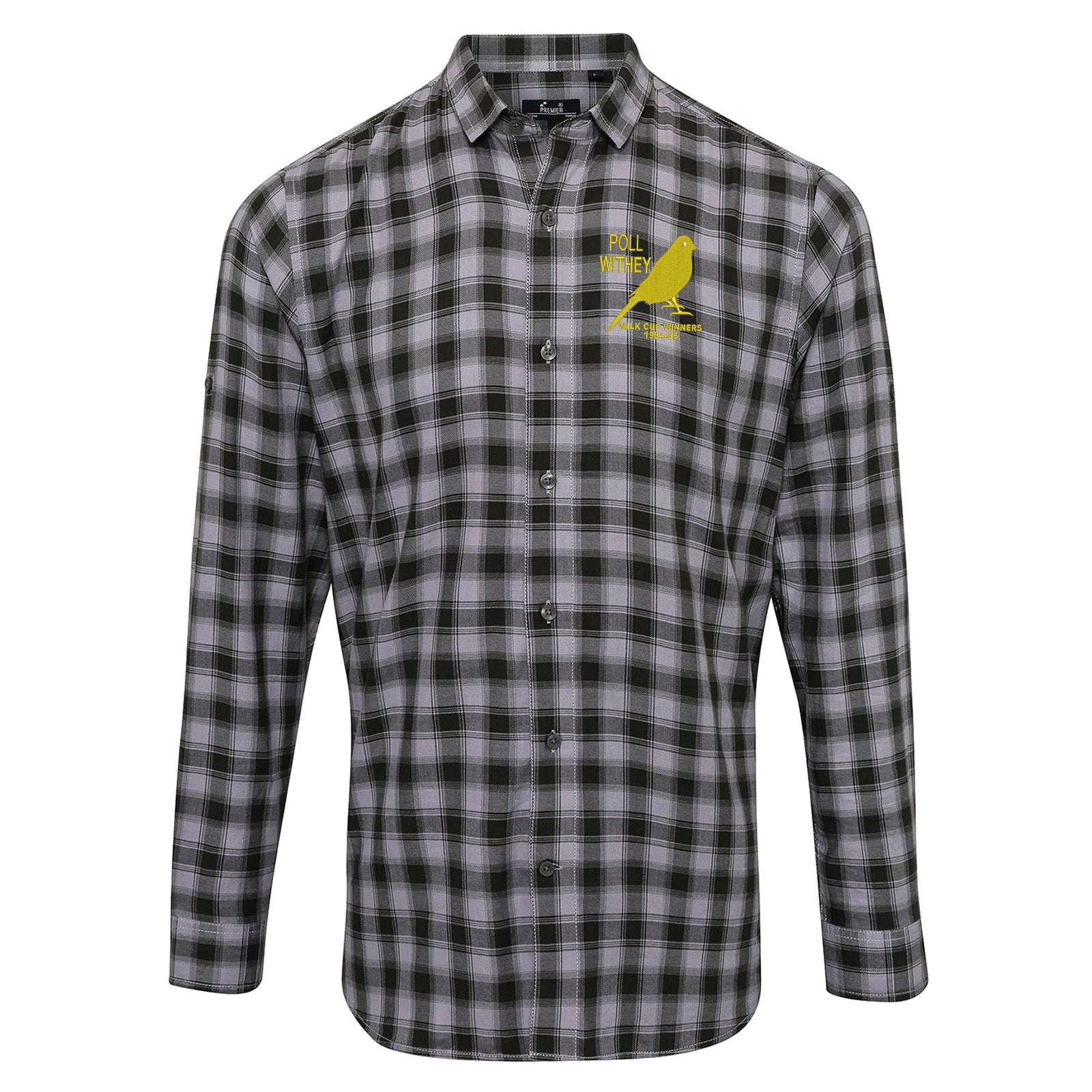 Retro Norwich Milk Cup Winners 1984-85 Embroidered Long Sleeve Mulligan Check Shirt
