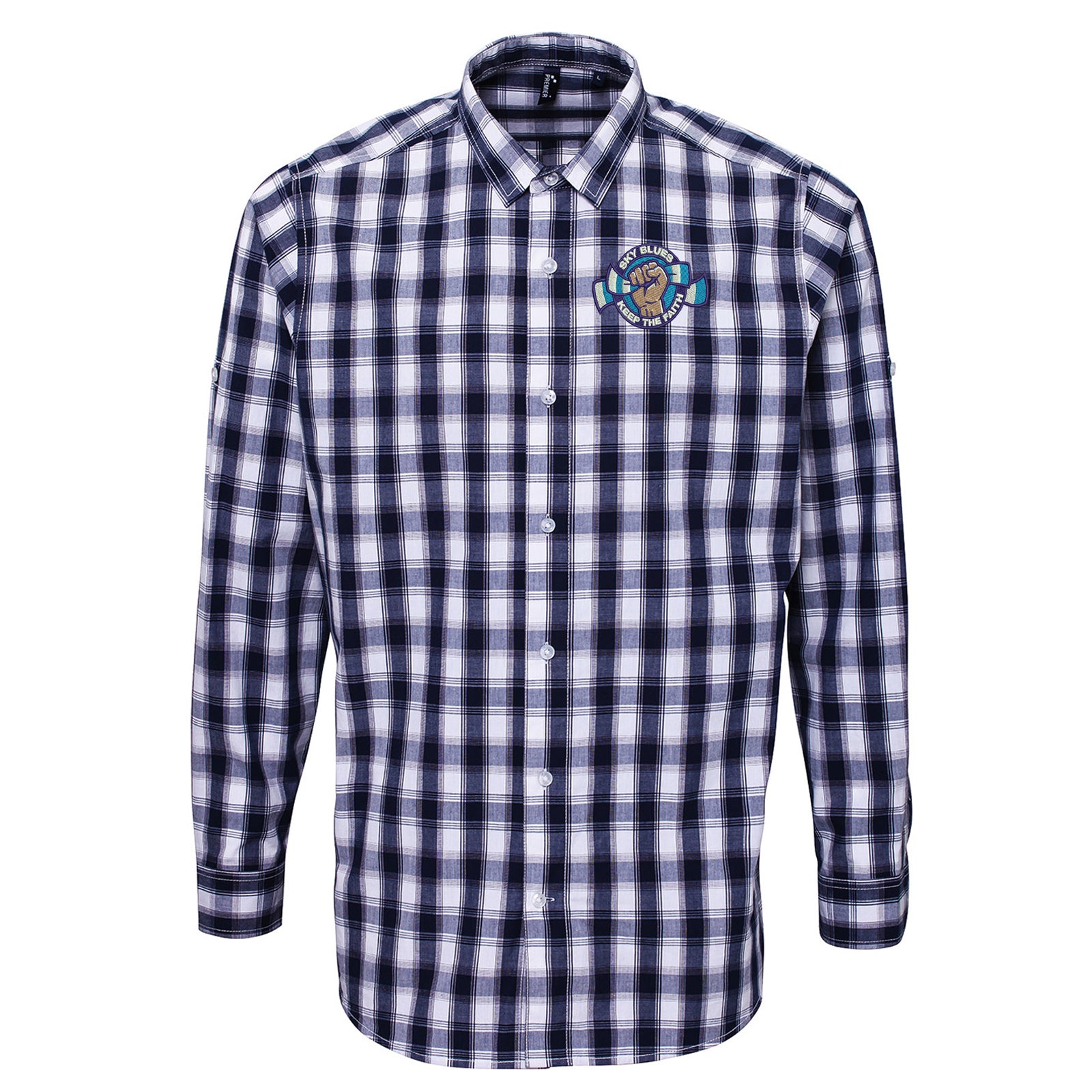 Sky Blues Keep The Faith Embroidered Long Sleeve Mulligan Check Shirt