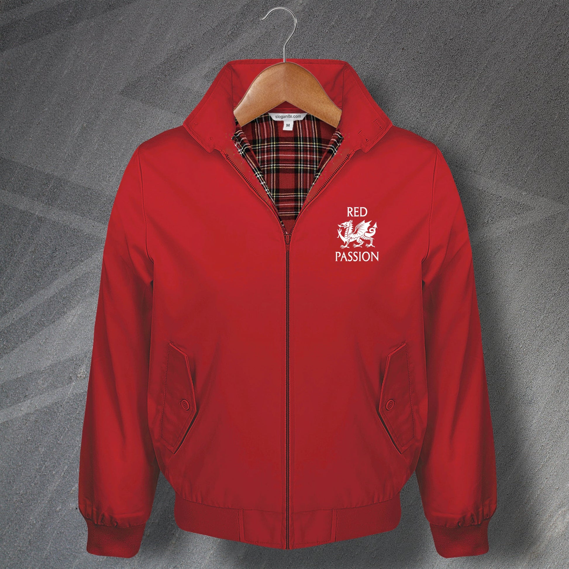 Our top quality red passion embroidered Harrington jacket features high quality canvas outer with brushed tartan lining and scalloped back shoulder seam. The jacket has button down side pockets with elasticated cuffs and waistband and the outer is made from 65% polyester; 35% cotton with the inner 100% polyester. Available in 5 colours and eight sizes the smart jacket is also machine washable.